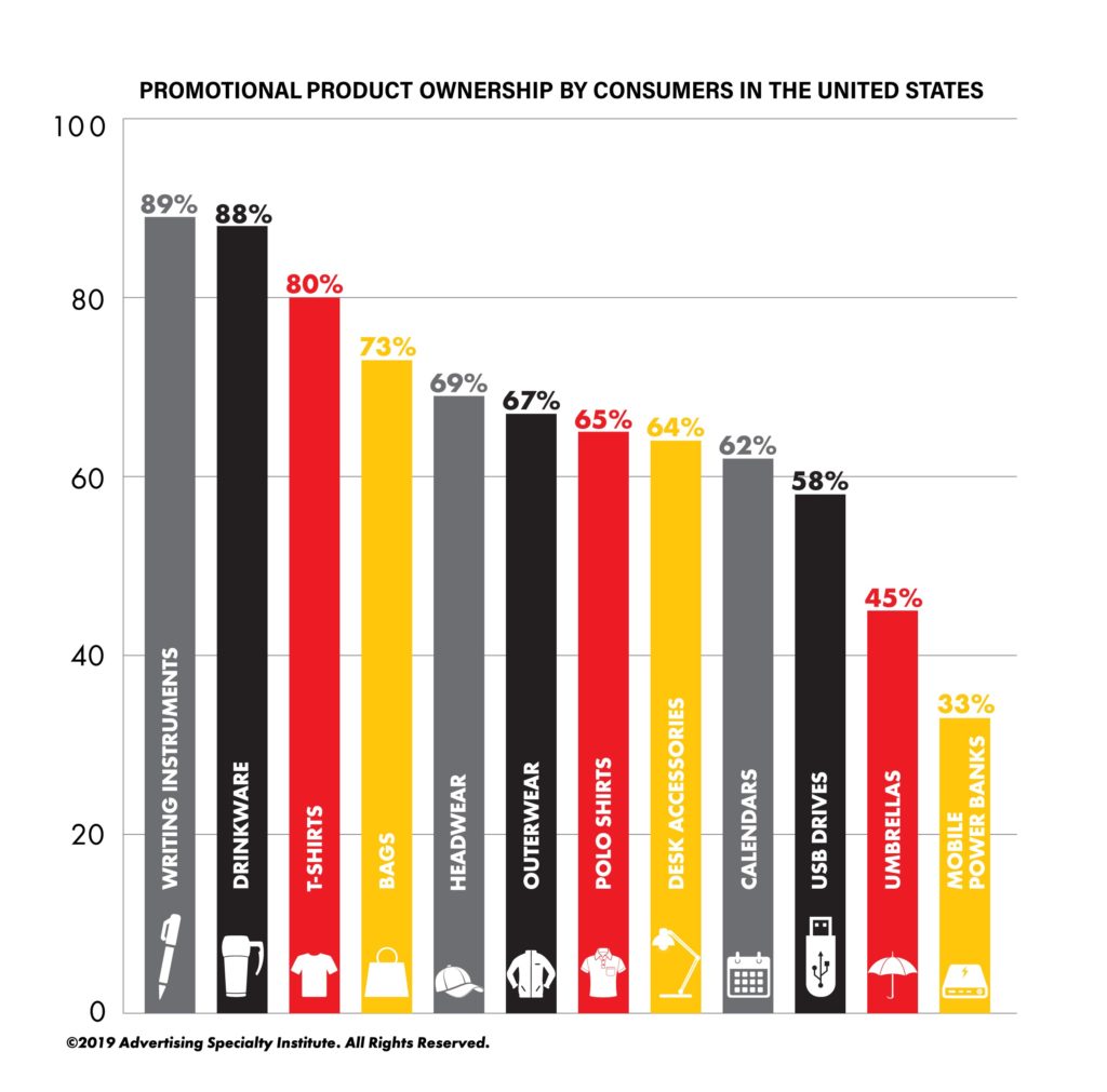 Who Owns What? When it comes to promotional products, almost everyone owns almost everything! A quick glance at the graphic below confirms that promotional pens and drinkware are owned by nearly 9 in 10 consumers. In fact, items in the top 10 categories are owned by more than half of consumers! Promotional Products Work! #promoproductsTulsa